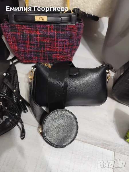 Черна чанта с малко портмоне на дръжката, която е доста широка и удобно, цена 10лв.