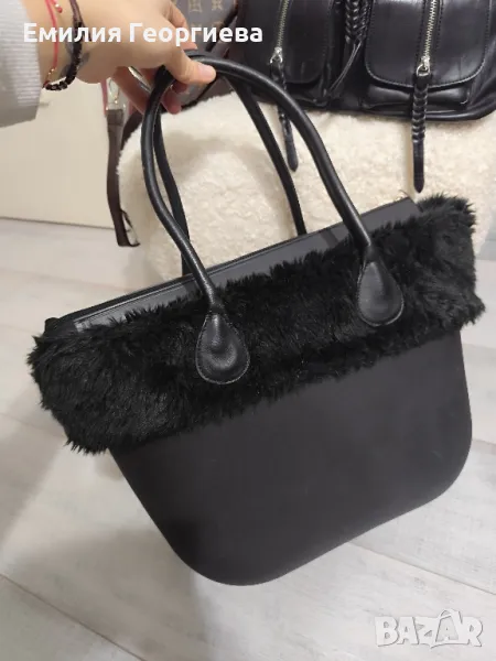 Реплика Obag, чантата се продава с пухкавия черен аксесоар, който е с цип отвътре за по голяма сигурност на чантата и дръжките към нея, цена 30лв.