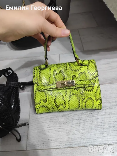 Малка неоново зелана чантичка с змийски принт, цена 10лв.