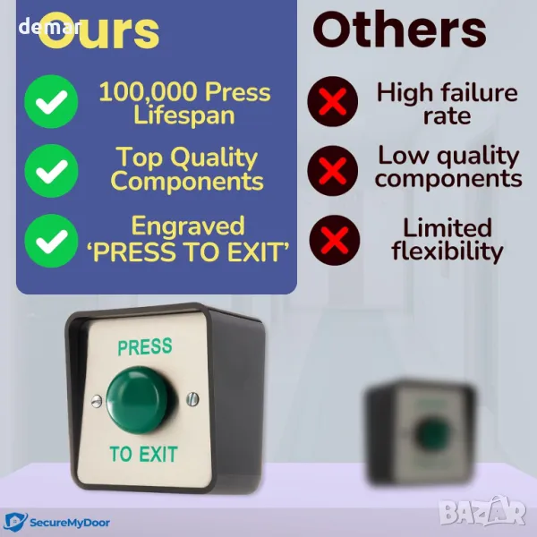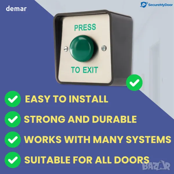 SecureMyDoor Outdoor IP65 НАТИСНЕТЕ ЗА ИЗХОД Бутон, Устойчив на атмосферни влияния