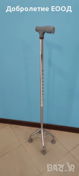 Проектиран да осигури допълнителна стабилност и подкрепа за хора с намалена подвижност. Разполага с четири опорни точки, които увеличават контактната повърхност със земята, предоставяйки по-добър баланс в сравнение със стандартните бастуни.