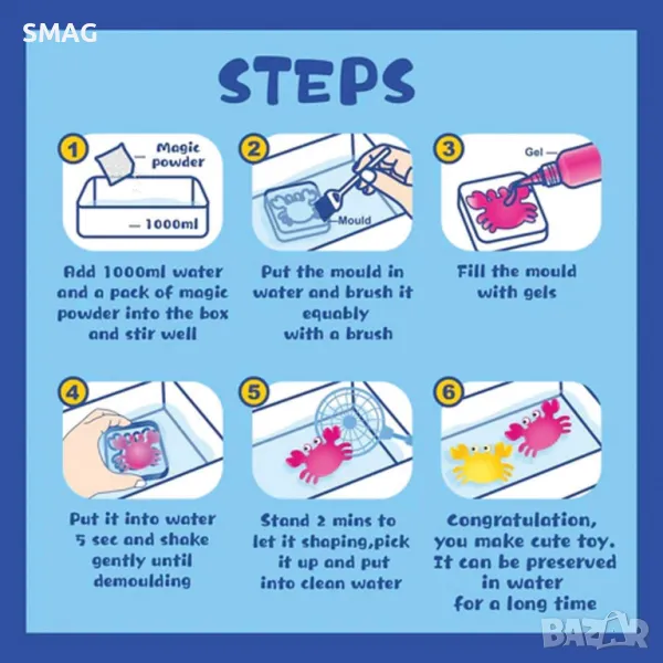 Създавайте форми от желе, които плуват във водата. Хвърлете дизайна си във водата и той магически ще приеме форма.