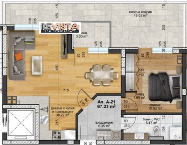➡️ Изложение: Север, етаж: 4 от 4, застроена площ: 67,23 кв.м., общи части: 8,56 кв.м., открита тераса: 22 кв.м.