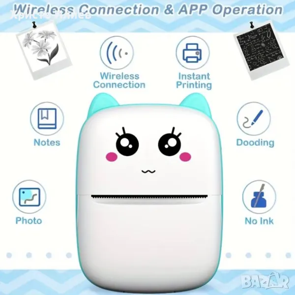 Преносим Мини принтер коте термопринтер с Bluetooth