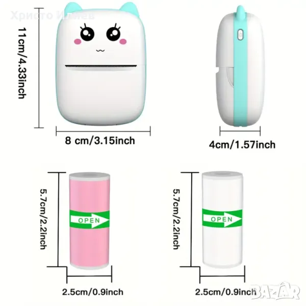 Преносим Мини принтер коте термопринтер с Bluetooth
