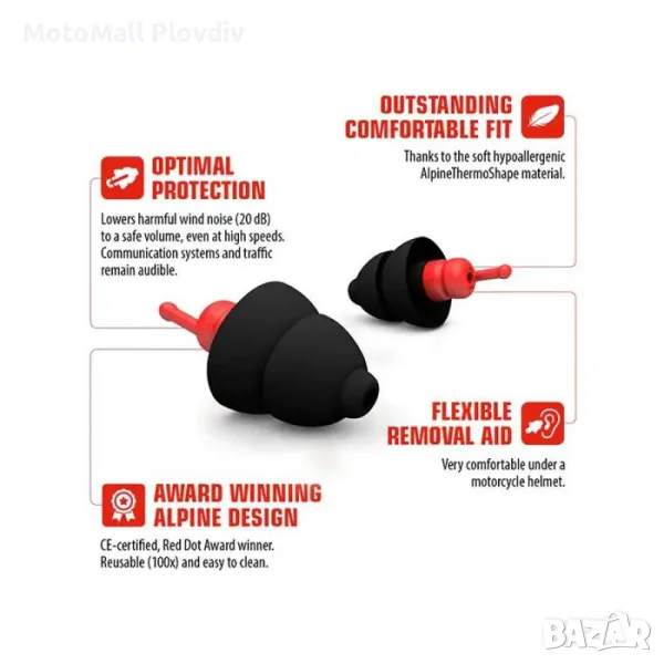 Тапи Alpine MotoSafe също така са и единствените тапи на пазара с меки филтри, което ги прави удобни дори и под каската.