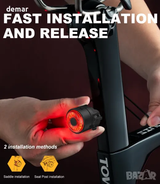 TOWILD TL03 интелигентна задна светлина за велосипед, USB-C акумулаторна