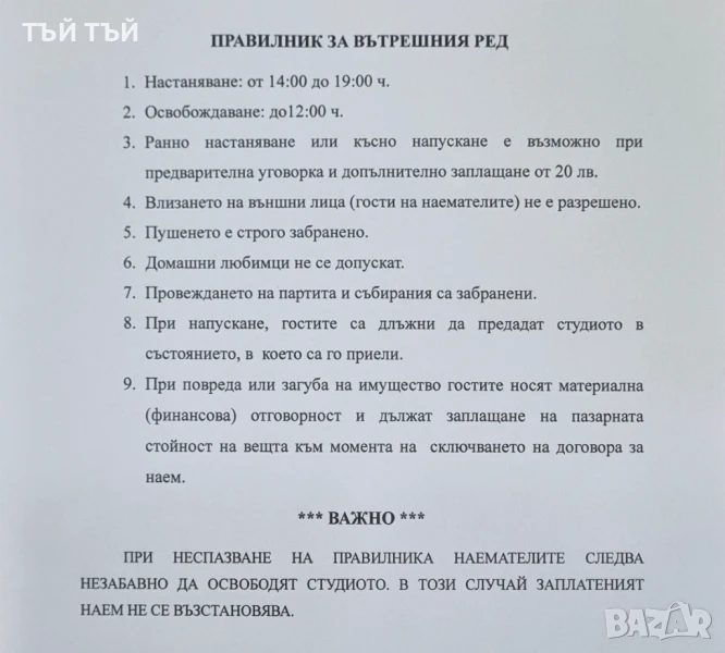 - Външни лица в студиото (освен настанените) не се допускат!