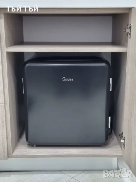 - кухненски бокс оборудван с микровълнова фурна, минибар, кафе машина с капсули и електрическа кана за гореща вода, чаши, чинии и прибори за хранене;