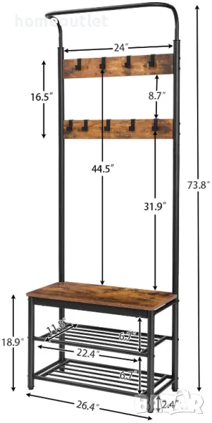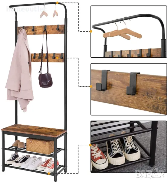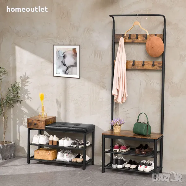 Със семплото и многофункционално портманто в индустриален стил, ще организирате своите връхни дрехи, обувки, чанти, аксесоари, по най-добрия възможен начин.