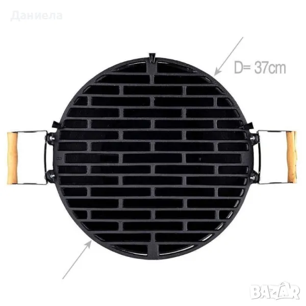 чугунена скара с дървени дръжки; Регулируема Височина на Скарата: За контрол на интензивността на топлината.