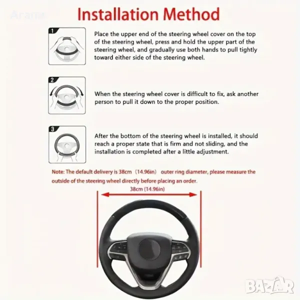 Кожен калъф за волан на автомобил ново , снимка 1 - Аксесоари и консумативи - 49259321 Кожен калъф за волан на автомобил ново , снимка 2 - Аксесоари и консумативи - 49259321 1/2