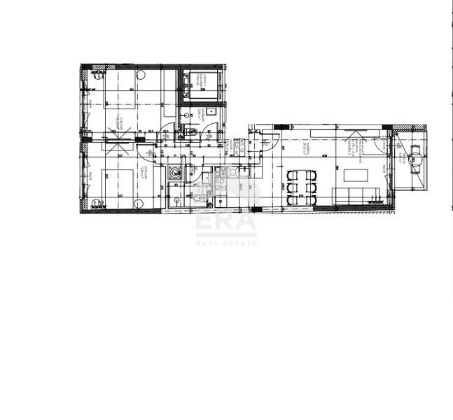 Апартаментът се намира на трети жилищен етаж и има следното разпределение: входно антре, просторна дневна с кухненски бокс, две спални - 13 кв.м. и 16 кв.м., две бани, тераса и мазе към апартамента с площ от 2,51 кв.м.