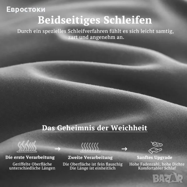 Изработен от висококачествен микрофибър, той впечатлява с изключителна мекота, гладък и деликатен на допир, лек и дишащ за комфортно усещане и спокоен сън.