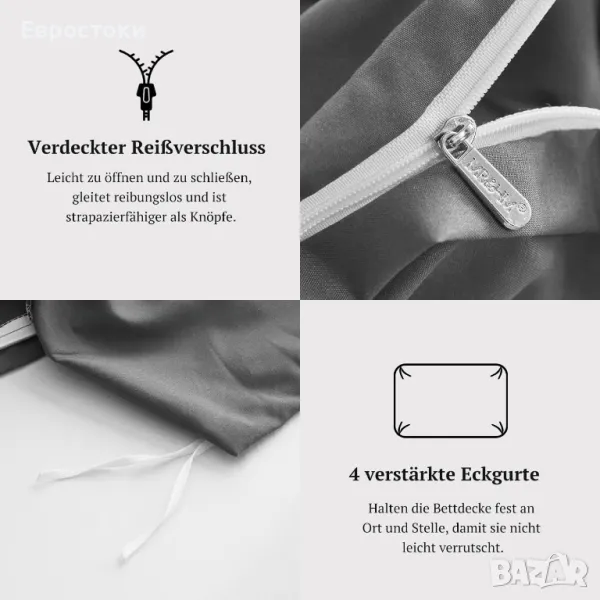 4 подсилени ъглови ленти държат плътно завивката и предотвратяват свиването на пълнежа. Дизайнът със скрит цип е по-лесен и по-удобен от конвенционалния дизайн с копчета, така че можете лесно да прикрепите и свалите завивката и да предпазите завивката си от мръсотия и прах.