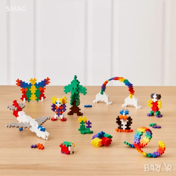 Kреативна игра за конструиране, която предлага безкрайни възможности. С частите Plus Plus в основни, неонови или блестящи цветове децата могат да изграждат цветни пъзели и други конструкции както в 2D, така и в 3D. Това е перфектна STEM образователна играчка, която стимулира фината моторика, повишава креативността, концентрацията и търпението. Една форма - безкрайни възможности! Могат да се мият в съдомиялна машина или пералня. Всяко парче е с размери 20 мм x 12 мм. Всеки пакет съдържа 520 части в различни цветове и ръководство стъпка по стъпка за изграждане на всеки дизайн, който можете да си представите! Опаковката е многократна, подходяща за съхранение на парчетата.
