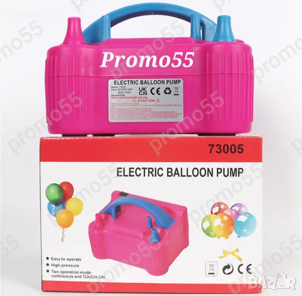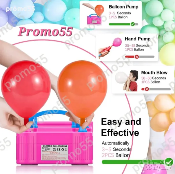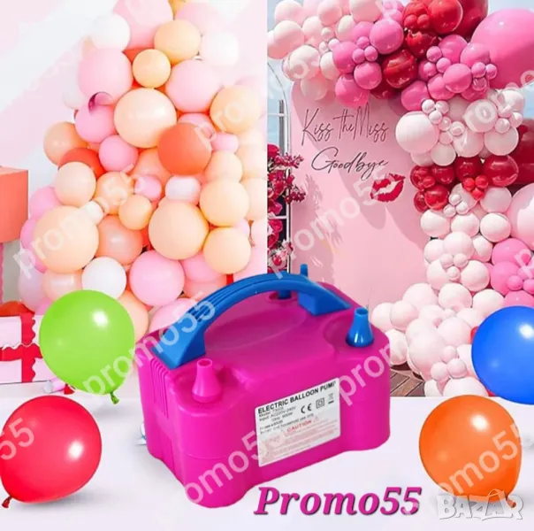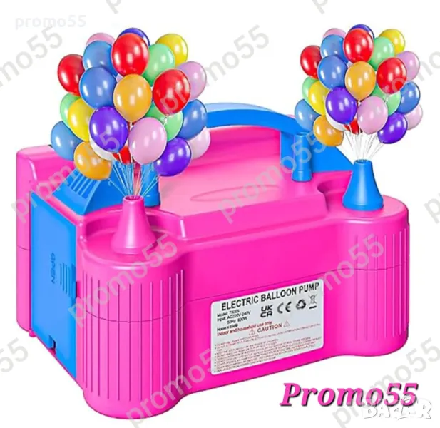 Електрическа помпа за надуване и декориране на балони с 2 отделни дюзи и мощен 600 W мотор, супер бърза и ще надуе вашите балони за миг на око - намалявайки времето ви за подготовка и празнуване. Типичен голям латексов балон може да се напълни за 2 секунди!!!
