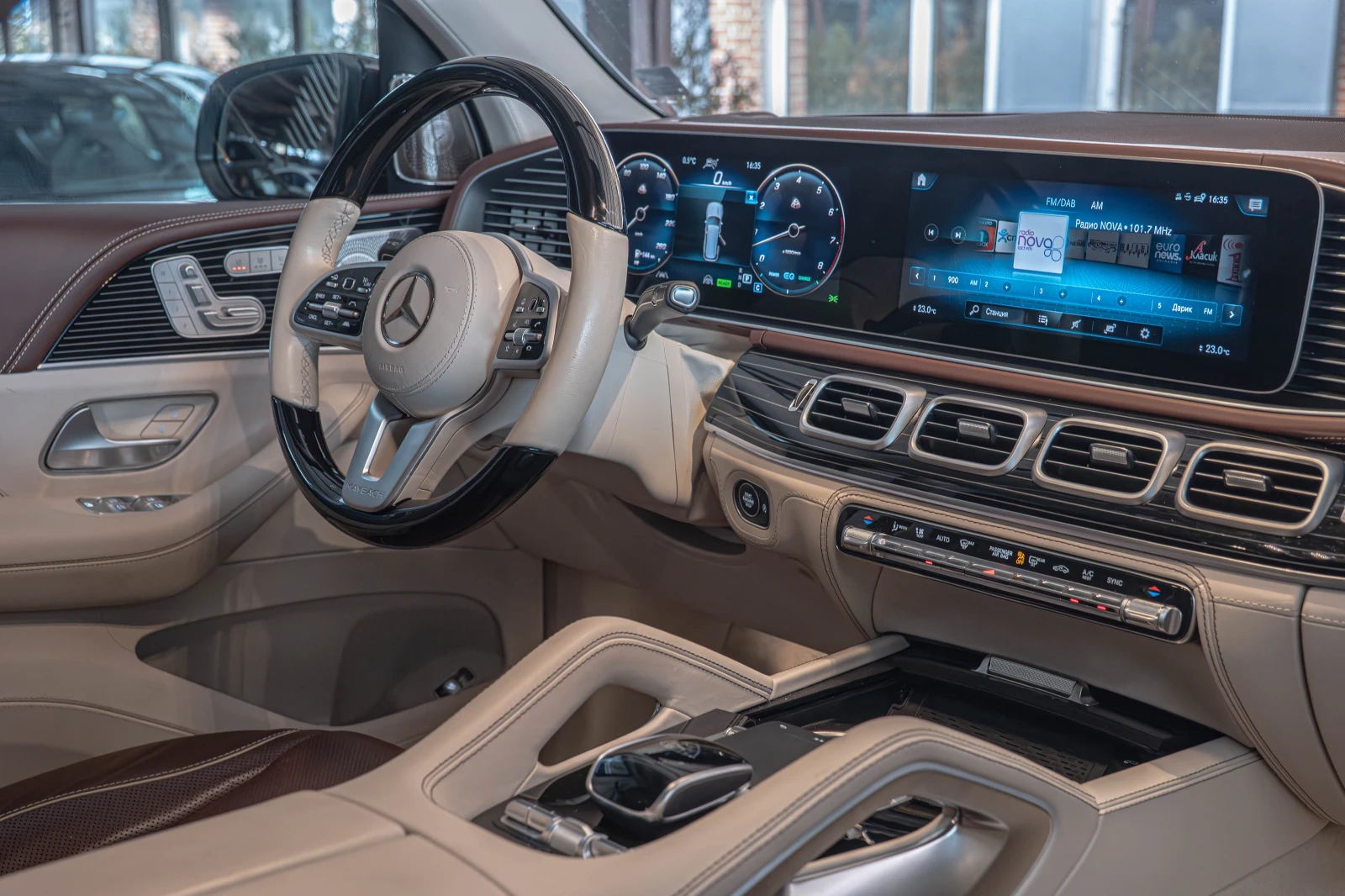 Наличен Mercedes GLS600 Maybach 2-тонова боя, система за адаптивни чистачки (Magic Vision Control), система за активно окачване/амортисьор (E-Active Body Control), пакет оборудване: designo кожа, пакет оборудване: Energizing Plus, телефония за автомобил (Bluetooth телефонен модул), бизнес телефония отзад, устройство против кражба за колела (ключалки на джантите), система за забавление отзад (2 екрана), пакет за подпомагане на водача Plus, допълнителен автомобил ключ с дистанционно управление, подови подложки с дълбок косъм, държач за чаша с функция за охлаждане / функция за отопление, Head-up дисплей (дисплей за преден изглед), индукционна стойка за зареждане за смартфон отзад, интериор: плавни линии с пиано лак, интериор: First-Class отзад (High Class отзад), сгъваема масичка, интегрирана в облегалката на шофьорската и пътническата седалка, 2 слушалки (без кабел), охладителна кутия в задния централен подлакътник, волан (дърво/кожа), LM джанти предни/задни: 9. 5x23 / 11. 5x23 (ковани джанти, многоспицови, гланцирани), многофункционална телефония, затъмнени задни странични стъкла и задно стъкло, предавател за отваряне на гаражни врати (интегриран), сервизна система: MBUX Augmented Reality за навигация, серво заключване на вратите, покривало / тапицерия на седалката: кожа напа, 2-тона, 230V контакт, Burmester High-E nd съраунд система, подготовка за развлекателна система отзад Допълнителни функции: Въздушна възглавница от страната на водача/пътника, тип задвижване: задвижване на всички колела, горна част на арматурното табло с кожа напа, външни огледала в цвета на каросерията, предна въздушна възглавница за таза (тазова възглавница), хромиран пакет, DAB тунер (цифрово радиоприемане), релси на покрива (алуминий), стандартен дизайн и линия на оборудване, двойни сенници (разтегателни, въртящи се), осветени прагове, 16 kW електрически мотор (хибридно задвижване), изпълнителни седалки, система за подпомагане на водача: Agility Select / Dynamic Select (превключвател на режима на шофиране), настройка на превозното средство (онлайн услуги / приложения), наблюдение на превозното средство (система за проследяване на превозното средство), електрически прозорци отпред + отзад, задна поставка за чаша с функция за охлаждане / отопление, задна врата с автоматична система за отваряне и затваряне, интериор: ексклузивни елементи за тапицерия (разширен обхват), стойки Isofix за детска седалка на задната седалка, каросерия: 5 врати, автоматичен климатроник (термотроник), водач s странична въздушна възглавница за коленете, арматурно табло с променлив дисплей (широкоекранен кокпит), комфортен пакет Acoustics, communication module (LTE) preparation for Mercedes me connect, head airbag system (windowbag), fender flares in body color, loudspeaker system with center loudspeaker + bass box, steering wheel (sport) with multifunction, memory package, Mercedes-Benz emergency call system, mild hybrid 426 kW (engine 4. 0 liter - 410 kW CGI), bonnet with power dome, Multibeam LED, multi-contour seats in the rear including PRE-SAFE and massage function, multi-contour seats in the front, multimedia system MBUX (rear tablet), navigation system: hard drive navigation, panoramic sunroof, parking package with 360 camera, wheelbase 3135 mm, tire pressure monitoring system, low emissions according to emissions standard Euro 6d, side airbag (sidebag) at the rear, side airbag (sidebag) at the front, seat front right electric. регулируема (позиция на шофьора), разпознаване на заета седалка за въздушна възглавница от страната на пътника, вграден смартфон, щора за слънце на прозорците на задните врати, пакет огледала, система за гласово управление с разширени функции (MBUX), стандартен интериор, електрически странични стъпала. разтегателен, осветен, USB портове, предва