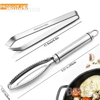Кухненски аксесоари Рибни люспи от неръждаема стомана Рендета за остъргване Бързо премахване Белачка за почистване на риба Скрепер Рибена кост Пинцети Инструмент Приспособление