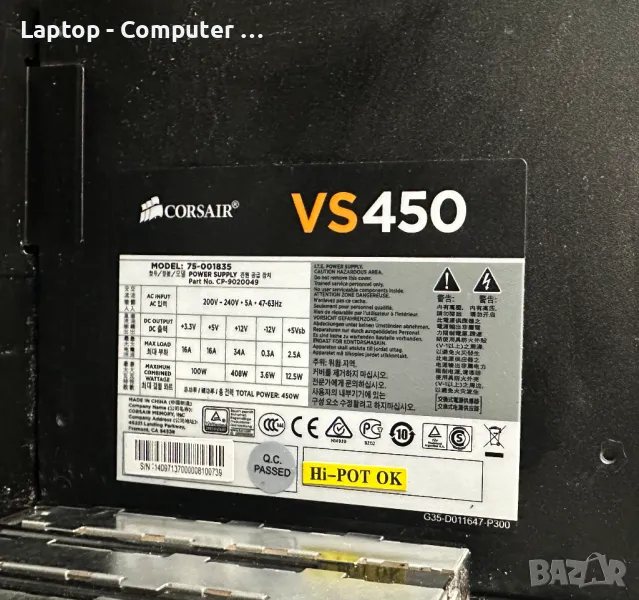 Марков и качествен захранващ блок Corsair VS450 450W работещ перфектно и почти без следи от използване.