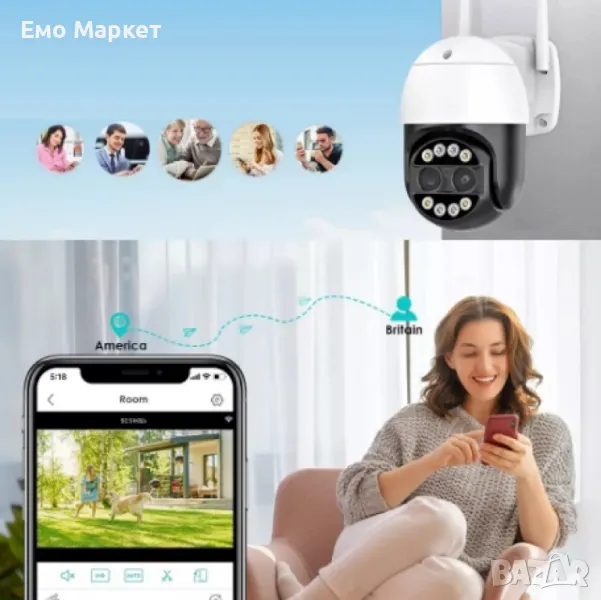 Двойна безжична 8MPX въртяща се камера за наблюдение 8 пъти zoom - iCSee (iOS и Android)