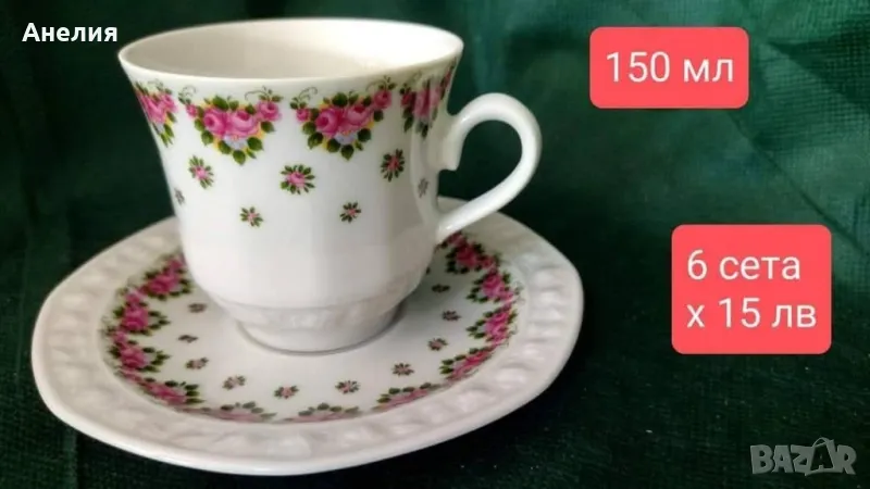 🌹Сетове с рози, осмоъгълна форма на чинииките и вместимост 150 мл.