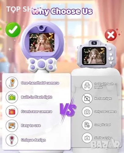 Нова Детска 1080P HD селфи камера, подарък за момичета 3-9 г. играчка → Обява 49265164