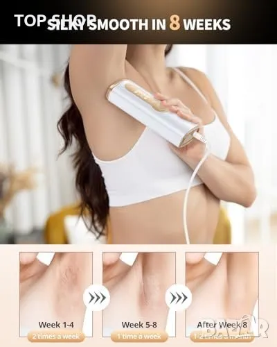 Интелигентна технология: Интензивна пулсираща светлина с дължина на вълната 550-1200nm за целенасочено унищожаване на космените фоликули.
