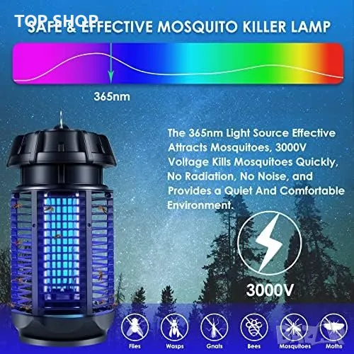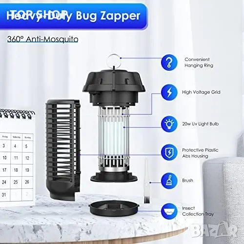 Ключови думи: електрическа лампа, убиец на комари, UV светлина, дом, градина, 20W, 360° привличане, тихо действие, безопасен дизайн, нетоксичен, малък и лек, лесен за почистване.