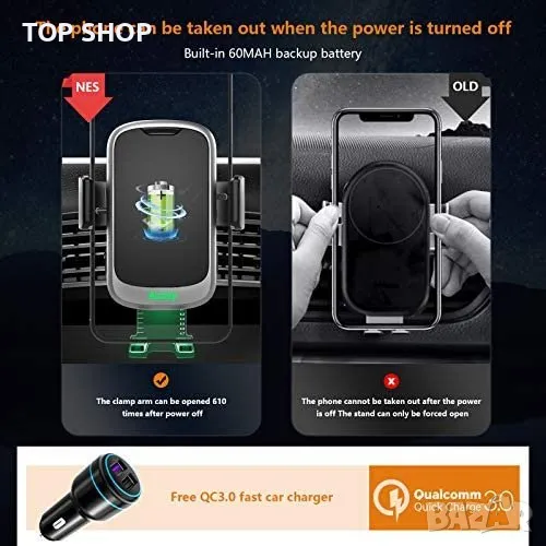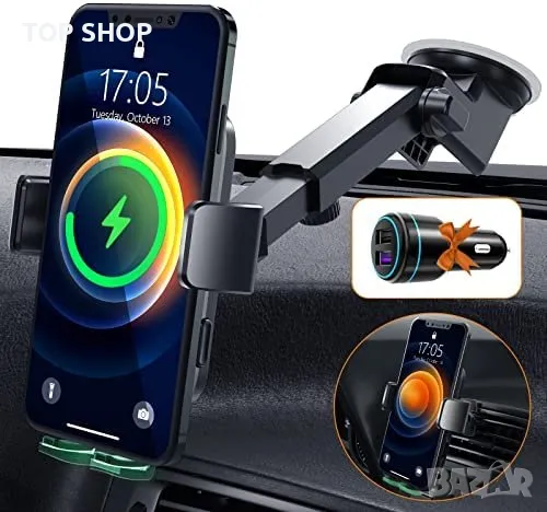 Ново 15W безжично зарядно за кола автомобил универсална Стойка телефон → Обява 49265205