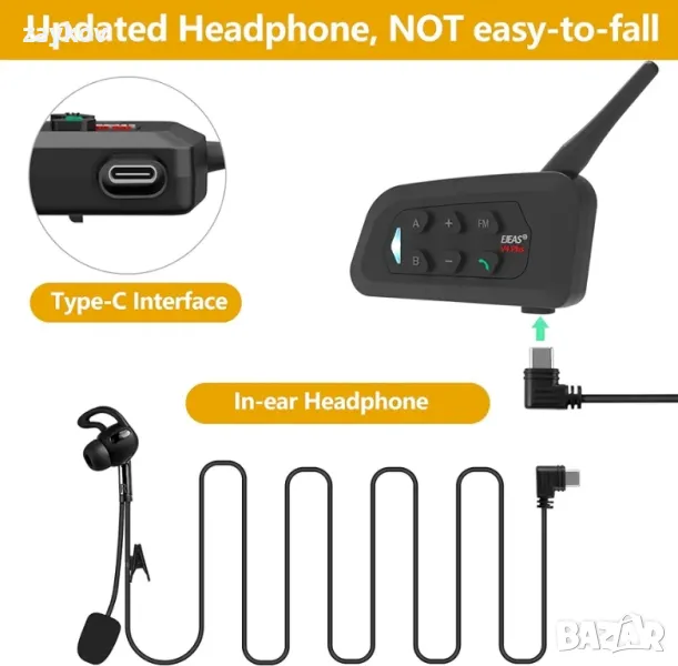 EJEAS V4C Bluetooth слушалка Интерком за рефер, 4-посочна комуникационна система