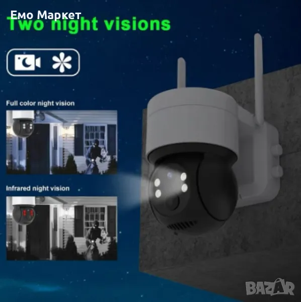 Соларна WIFI камера със соларен панел PTZ 360, 1080P, Full HD, цветно Hощно Bиждане