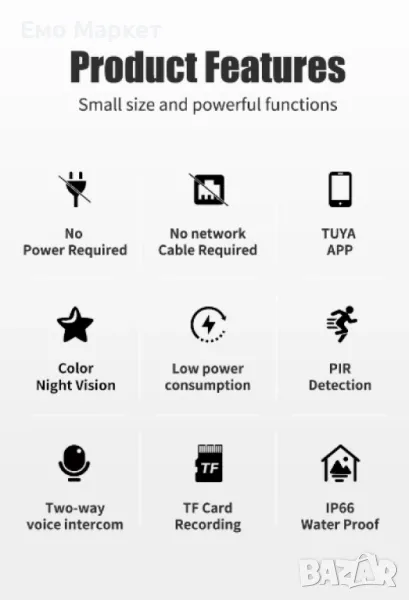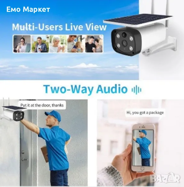 Тази камера е идеална за наблюдение на открити пространства, където няма постоянен достъп до електрическа мрежа, като градини, вили и други отдалечени обекти.
