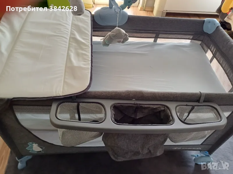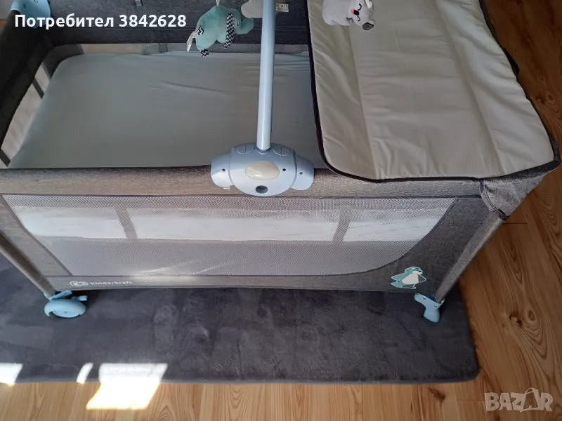 Бебешка кошара Kinderkraft без следи от употреба. Ползвана е 5 месеца на горно ниво. Към нея има удобен бебешки матрак. Всички аксесоари са здрави и налични. Сгъва се до компактен размер (76 x 20 x 20 см).