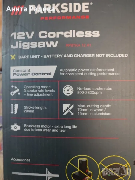Акумулаторен прободен трион 12v Parkside