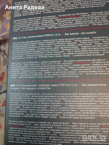 Акумулаторен прободен трион , снимка 1 - Други инструменти - 49266172 Акумулаторен прободен трион , снимка 2 - Други инструменти - 49266172 Акумулаторен прободен трион , снимка 3 - Други инструменти - 49266172 Акумулаторен прободен трион , снимка 4 - Други инструменти - 49266172 1/4