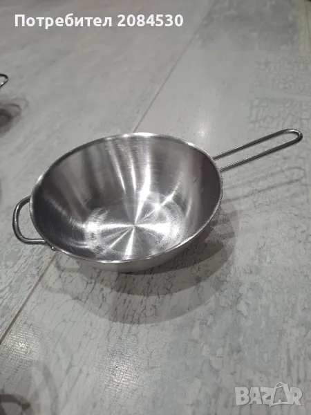 Внос от Австрия в отлично състояние. Диаметър :тенджера- 12,5см; уок-13,7см; тиган -13,5см.Височина: 5,5см;4,5см;2,5см.Цената е за брой. Пращам с куриер.