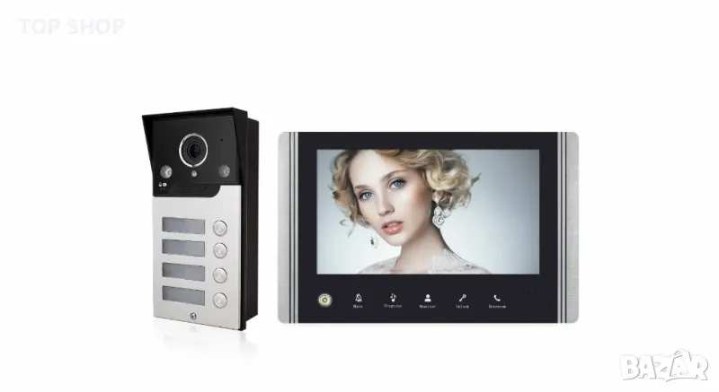 НОВ видеодомофон за 3 или 4 апартамента, 9 инча нощно виждане, дистанционно отключване двупосочен