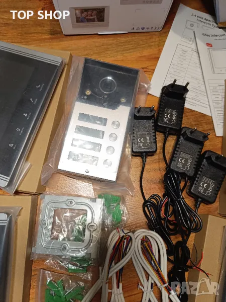 Комплектите са два - единия е с камера за 3 апартамента, другия е за 4. Обявената цена е за 3 апартамента.
