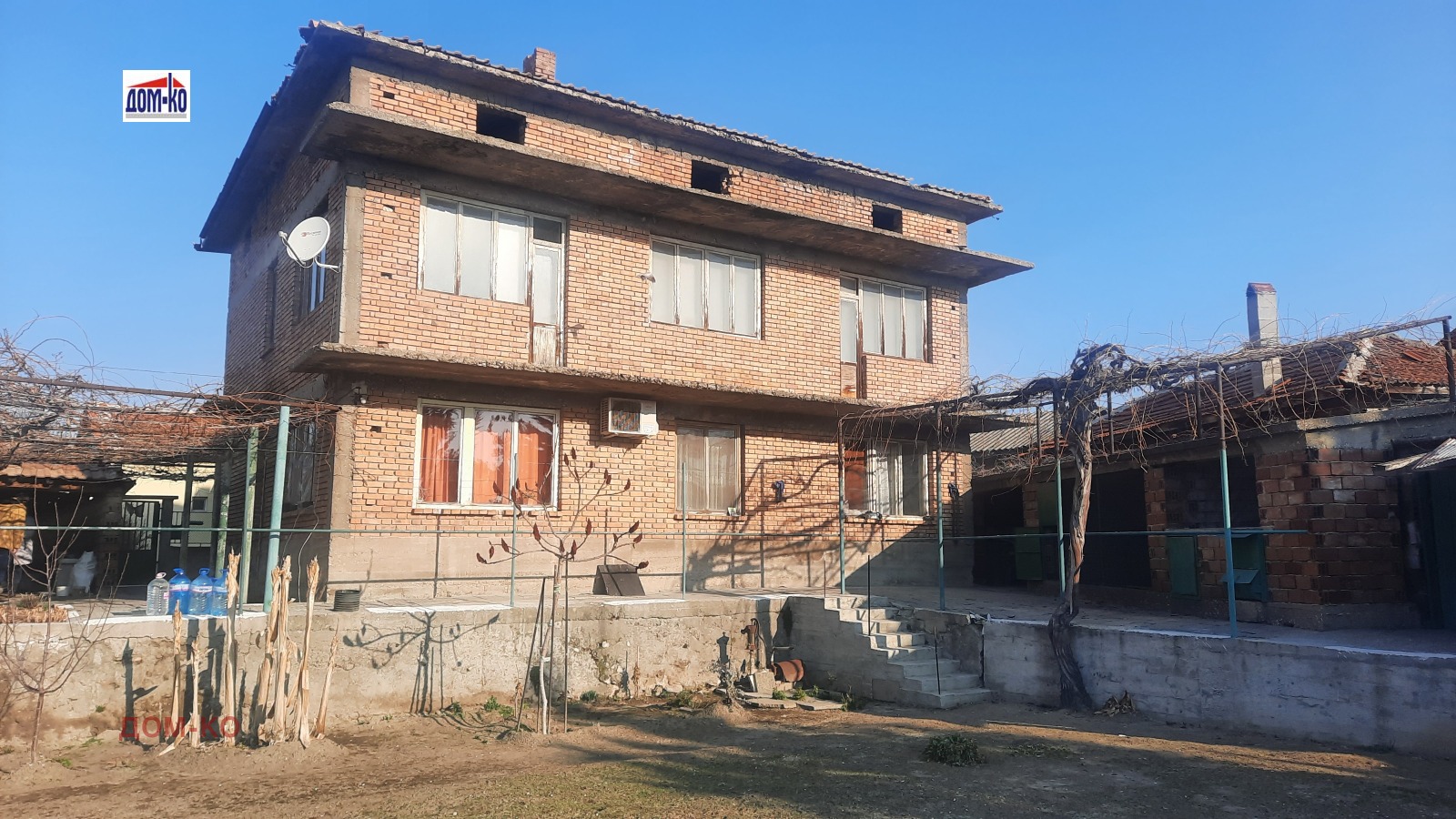 Агенция за недвижими имоти ДОМ-КО предлага за продажба в село Ново село, общ. Стамболийски, обл. Пловдив, Дворно място с площ 1430 квадратни метра с построените в него: ДВУЕТАЖНА ЖИЛИЩНА СГРАДА-КЪЩА построена през 1980 година, застроена на площ 116 квадратни метра и РЗП 232 квадратни метра. Къщата е масивно строителство със железобетонни плочи между етажите със следното разпределение: ПЪРВИЯТ ЕТАЖ се състои от предверие със стълбище към вторият етаж, от предверието през входна врата се пристъпва в коридор, в който имат излаз четири самостоятелни стаи и санитарно помещение - баня с тоалетна. ВТОРИЯТ ЕТАЖ е в груб строеж на тухла, състоящ се отново от четири самостоятелни стаи и помещение за санитарен възел. Къщата разполага с избено помещение и таван - под покривно използваемо пространство до което се стига чрез стълбище. В двора има построени също ГАРАЖ за два автомобила с площ 36 квадратни метра и друга масивна сграда със застроена площ от 30 квадратни метра. Имотът граничи с две улици (ъглов) като основната пред имота е асфалтирана. Водоснабден от уличния водопровод с открита партида към ВиК, отходните води са отведени в новоизградена септична яма, електрифициран с партида към EVN.