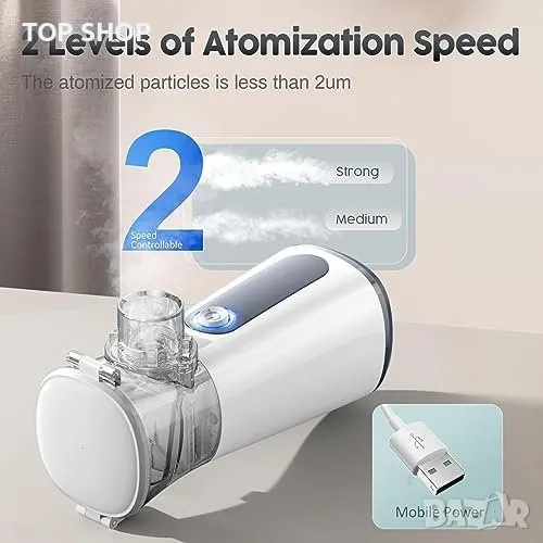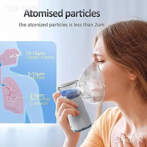 Пакетът включва апарат за мъгла с мрежа, мундщук, маски за лице за деца и възрастни, кабел USB тип C, въжета за носене, опаковъчна торбичка и ръководство за потребителя.