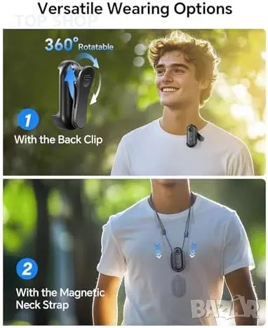 Универсално носене: С 360° въртяща се щипка или магнитен ремък за врата.
