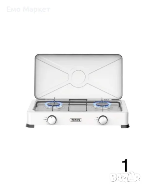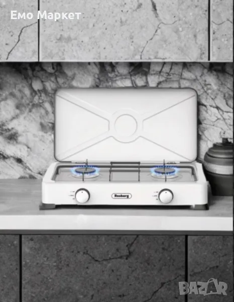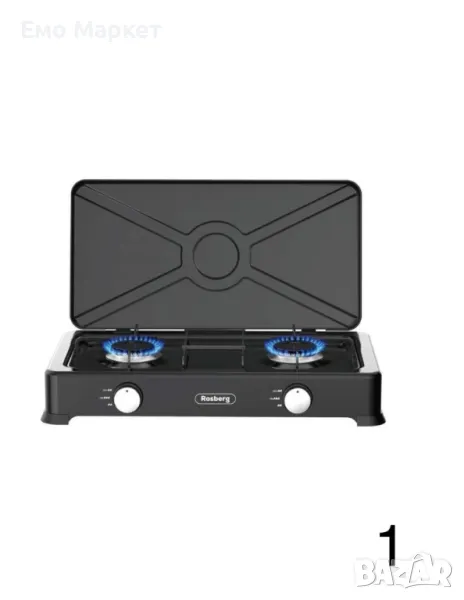 Двоен газов котлон с капак и автомачитно запалване Rosberg R51454E2, 30mbar 2x2.2kWh
