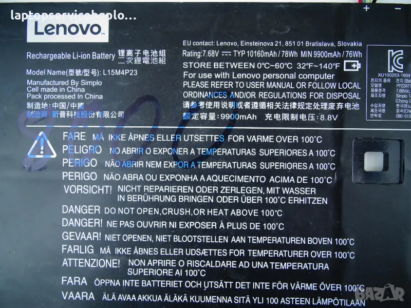 Волтаж: 7.68 V 9900 mAh 76 Wh