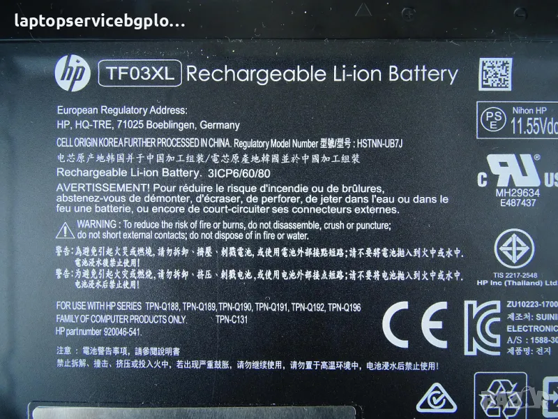 Волтаж: 11.55 V 3470 mAh 76 Wh