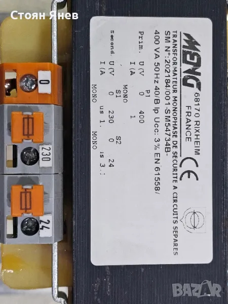 Трансформатор Meng 400VA - 220V ,24V, снимка 1 - Други машини и части - 49267451 Трансформатор Meng 400VA - 220V ,24V, снимка 2 - Други машини и части - 49267451 1/2