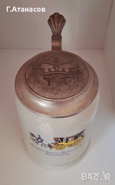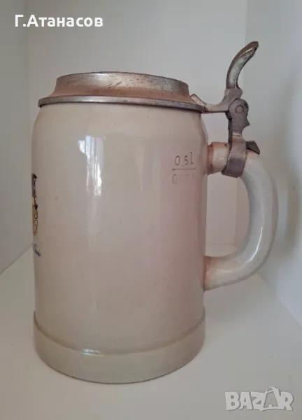 Старинна немска керамична халба с гравиран калаен капак