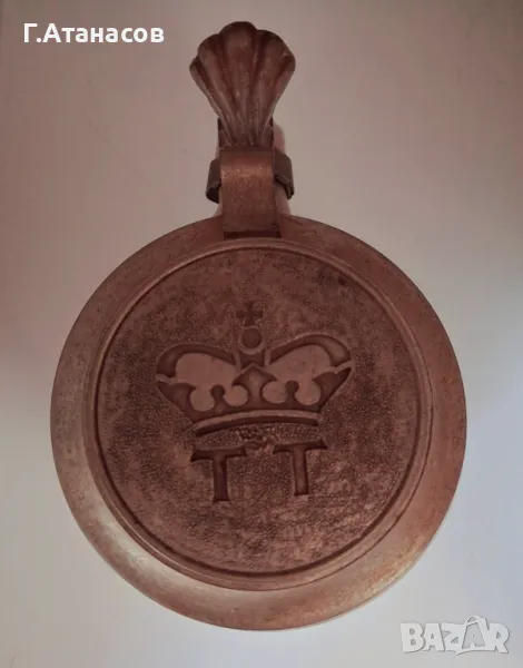 Старинна немска керамична халба с гравиран калаен капак на марката бира T & T