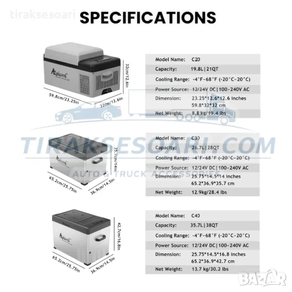 AlpiCool Хладилници Фризер за камиони, бусове, каравани. Хладилна кутия 12V 24V 220V.