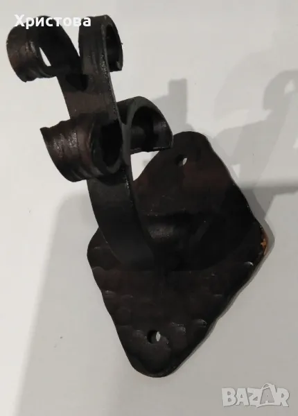 Стенна закачалка от ковано желязо. Височина 13 см, основа (ромбоид) - 13,5/10,2 см.
